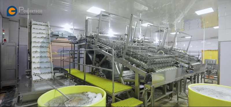 我们的自动剥虾生产线可以将有头和无头南美白虾加工成PUD产品,剥皮速度是手动的30倍左右,带来了高产能和非常好的剥皮效果,具体如下: