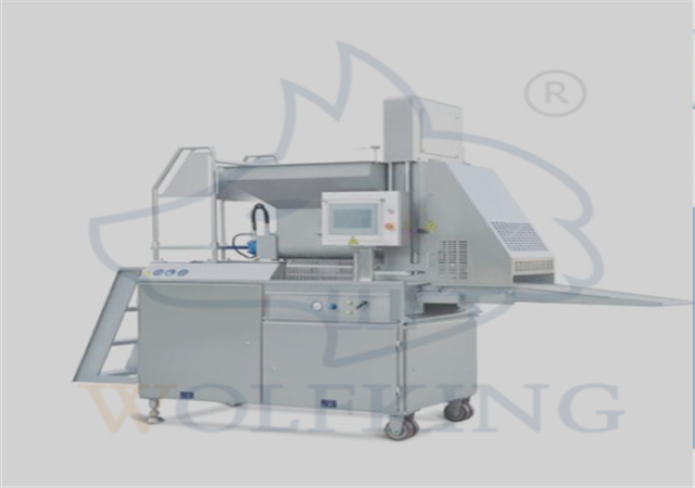 全自动成型机能自动完成肉的填充、成型、输出等工序,可以与上浆机、上粉机、油炸机、蒸煮机、速冻机、包装机连成熟食全自动生产线。